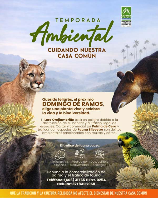 La CARDER te invita a celebrar la vida y la biodiversidad de una manera responsable en esta Domingo de Ramos. Elige una planta viva para tu procesión en lugar de la #PalmaDeCera. Recuerda que el #LoroOrejiamarillo está en peligro debido a la destrucción de su hogar. Que la tradición y la cultura religiosa no afecten el bienestar de nuestra Casa Común.